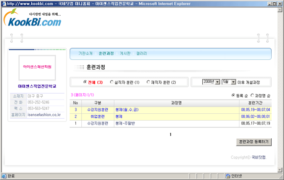ÈÆ·Ã°úÁ¤Àº °¢ ±â°üº°·Î µî·ÏµÈ ÈÆ·ÃÁ¤º¸°¡ ³ªÅ¸³ª°Ô µË´Ï´Ù.´Ù¸¸, µ¿ÀϰúÁ¤¿¡ ´ëÇØ¼ Áߺ¹µî·ÏµÇÁö ¾Êµµ·Ï À¯ÀÇÇØÁÖ½Ã±æ ¹Ù¶ø´Ï´Ù.
