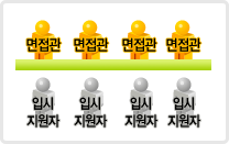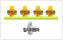 Áý´Ü¸éÁ¢ : ¿©·¯ ¸íÀÇ ¸éÁ¢°üÀÌ Áö¿øÀÚ ¿©·¯ ¸íÀ» ÇѲ¨¹ø¿¡ Æò°¡ÇÏ´Â ¹æ½ÄÀÌ´Ù.